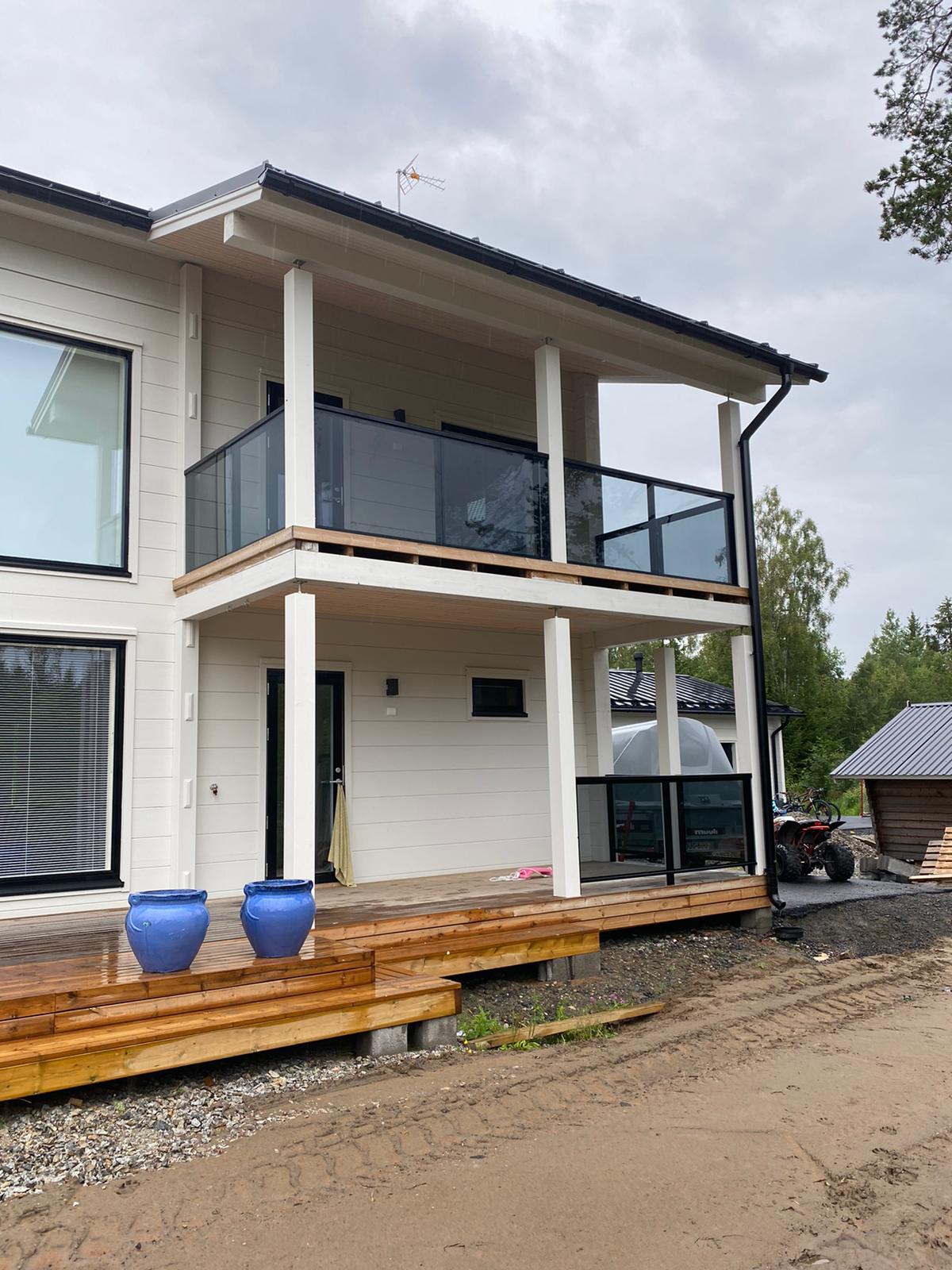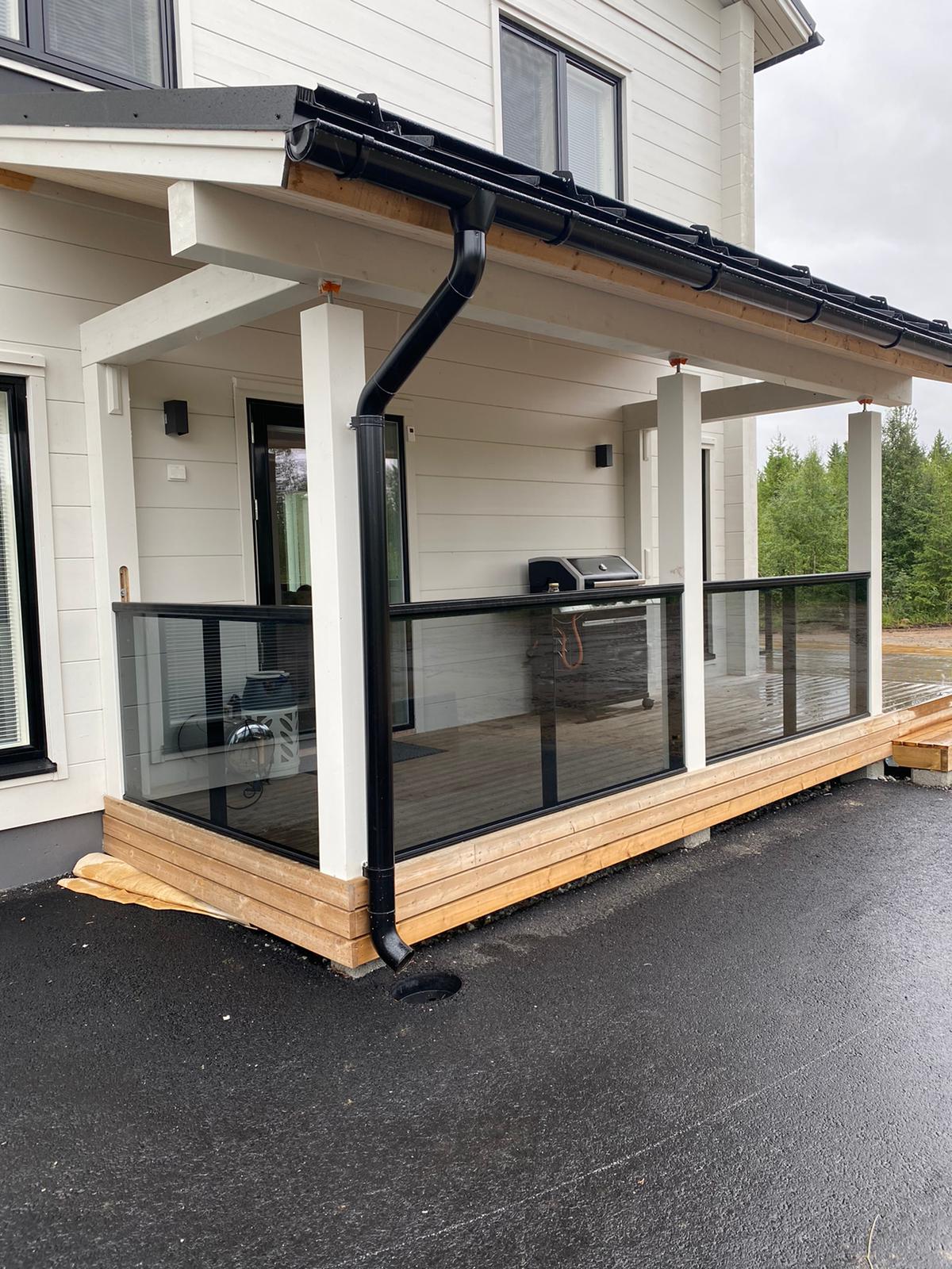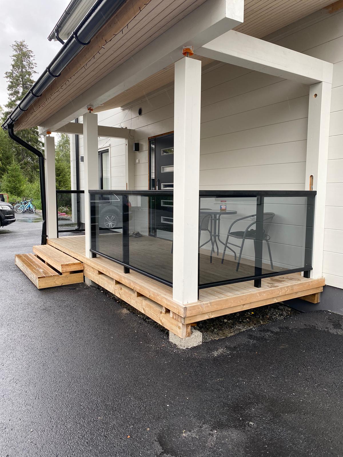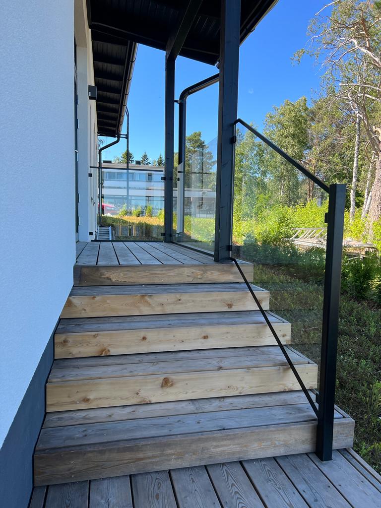 Alumiinilasikaiteet ovat helposti integroitavissa mm. parvekelasien kanssa. Tuotteet on valmiiksi lujuuslaskettu.